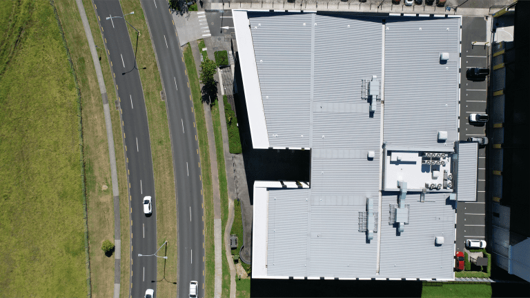 The Rooflogic roof system is comprised of RL LinerDeck, RL Vapour Control Layer, RL Acoustic Board, RL PIR Board, and RL TopDeck T.
