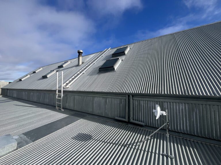 The roof and wall exteriors feature acid-washed, galvanised corrugated cladding.