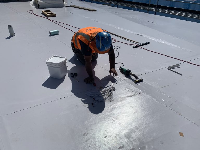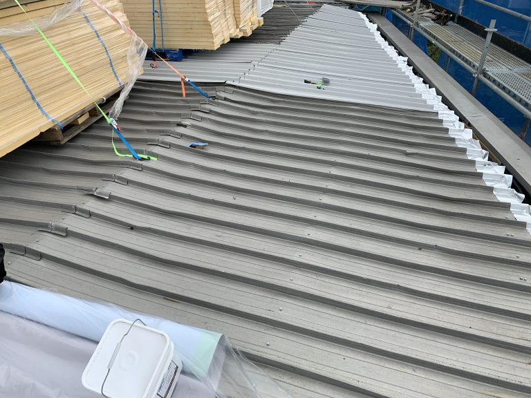 UltraTherm Xtreme FiberTite Recover insulated roofing system over existing metal roofing substrate.