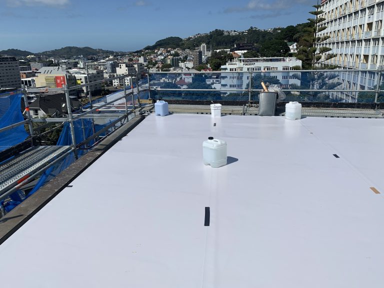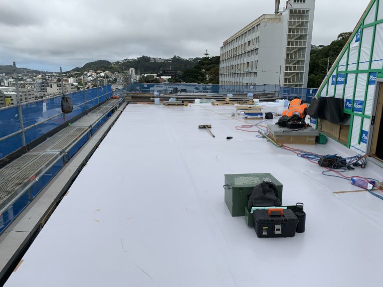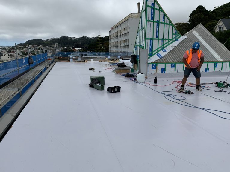 The roof was upgraded in 2020 with an Ultratherm Extreme system featuring a FiberTite membrane. The low pitch of the roof remained unchanged. The FiberTite membrane proved to be the ideal solution for this project, offering robust performance that stays reliable even with low slopes on nominally flat surfaces. The standard warranty applies even at low pitch, making it a dependable choice for the upgrade of this building.