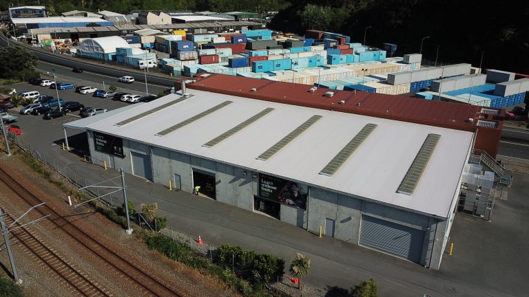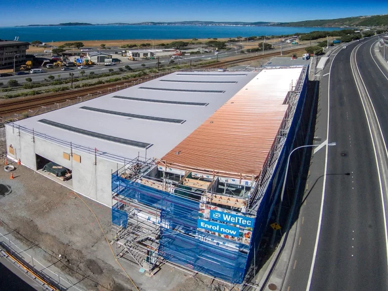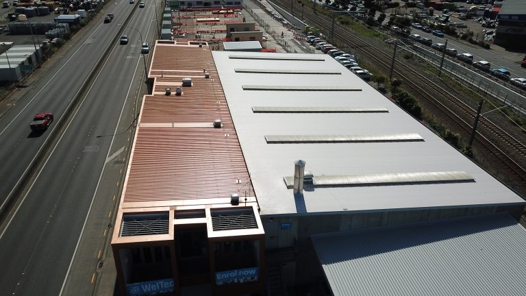 Design of a new trade training facility that incorporated both the RoofLogic insulated metal and membrane roof solutions. The insulated metal system was installed above the office and lecture room zone and formed a visual connection with the cladding system that was also supplied by RoofLogic. The larger membrane roof was installed above the main training area with a membrane finish selected to reduce rain noise.